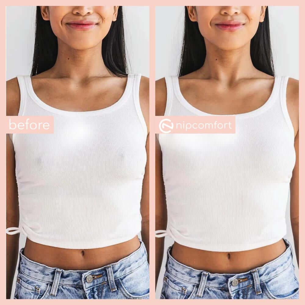 NIPCOMFORT Circles -Best for everyday wear and classic outfits. -Ideal under t-shirts, blouses, sweaters, and fitted tops -Provides even coverage and a smooth, natural look -Perfect when you want discreet protection with no visible lines -Great for daily use and longer wear NIPCOMFORT Triangles -Best for styled, low-cut, or fashion-forward looks. -Designed for deep V-necks, plunging tops, wrap dresses, and open necklines -Offers targeted coverage while staying hidden in revealing cuts -Helps shape and lift subtly without showing edges -Ideal for special outfits or statement looks